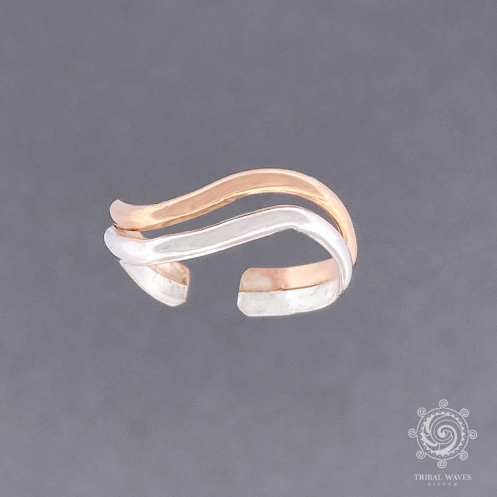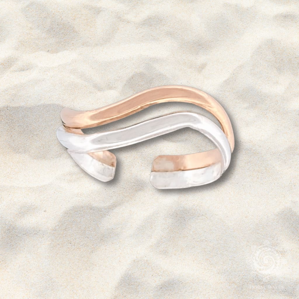 Ready to ride the style wave? This wavy toe ring is the ultimate blend of gold glow and silver shine. Handcrafted from 14K gold-filled or 14K rose-gold and sterling silver, this adjustable beauty gives you that effortless beach-chic vibe—no surfing required.
