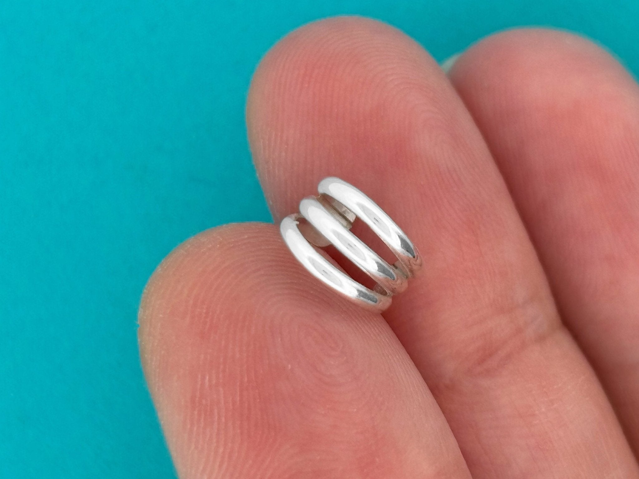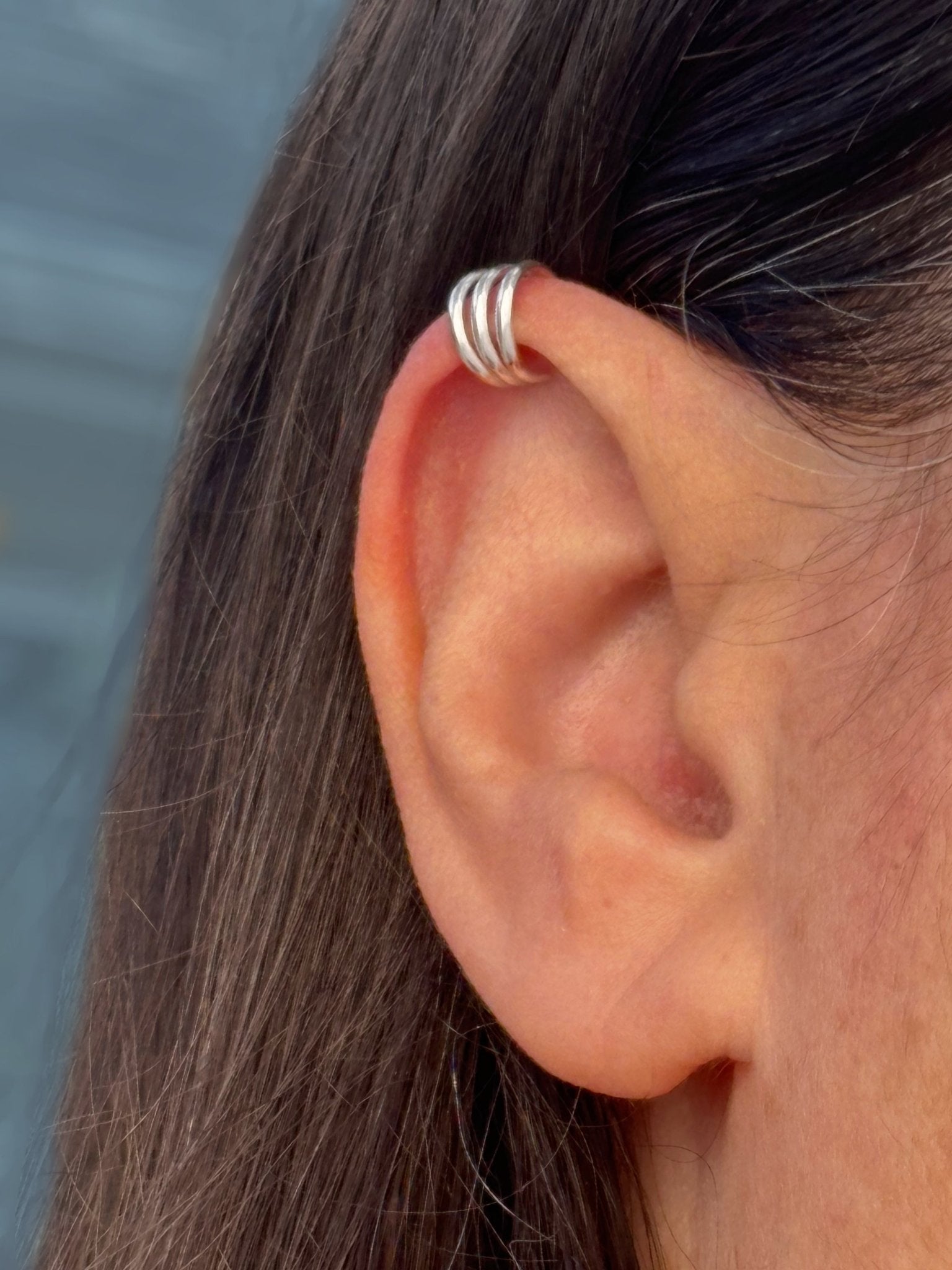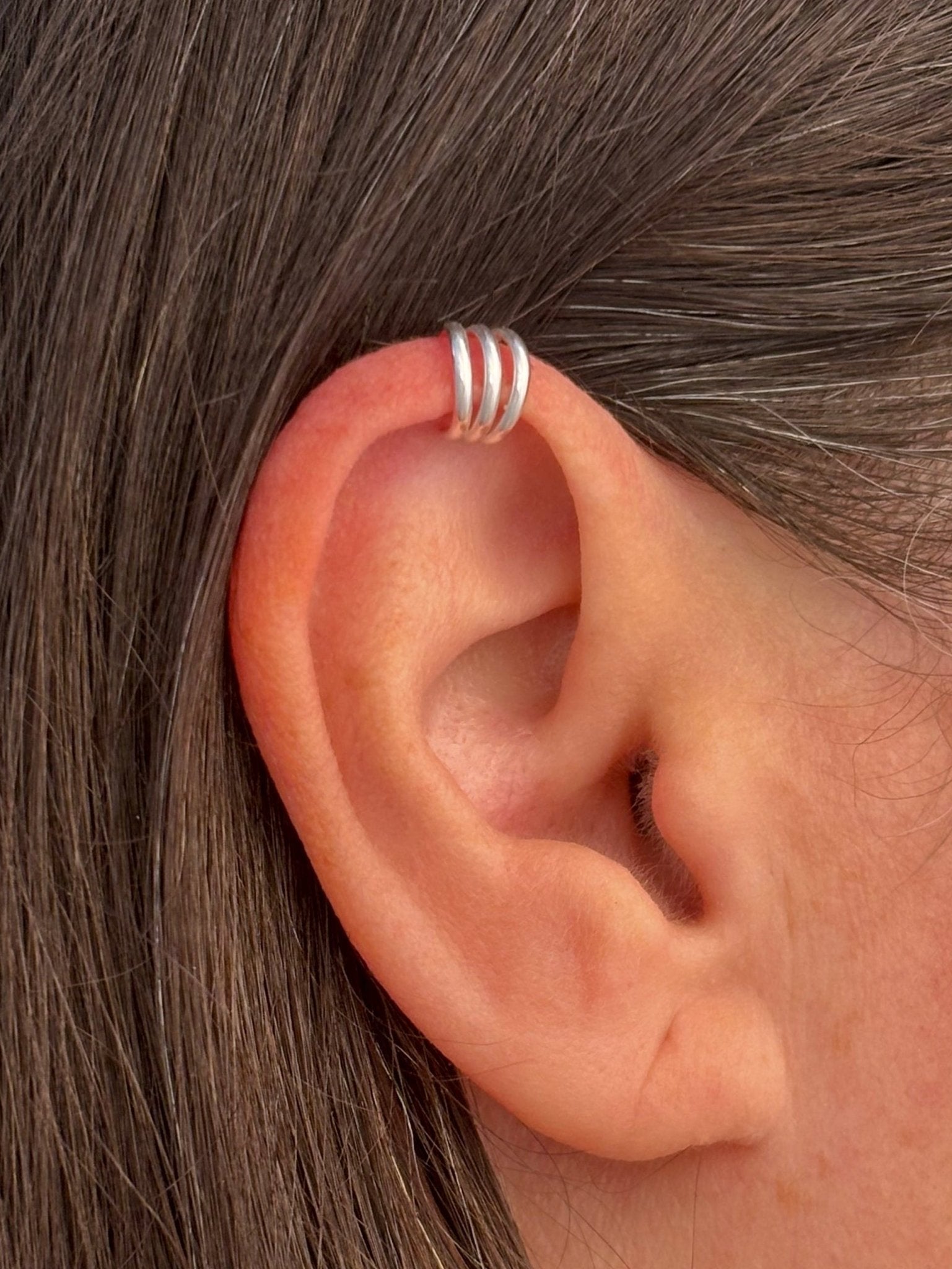 Upgrade your ear stack with this Triple Domed Mini Ear Cuff, handcrafted from high-quality Argentium sterling silver. At 5.5 mm wide, its domed shape gives a subtle curve and clean finish. It has enough presence to be noticed, but refined enough for everyday wear. No piercing needed: This wrap style slides over your ear helix/cuff area and gently clamps into place.